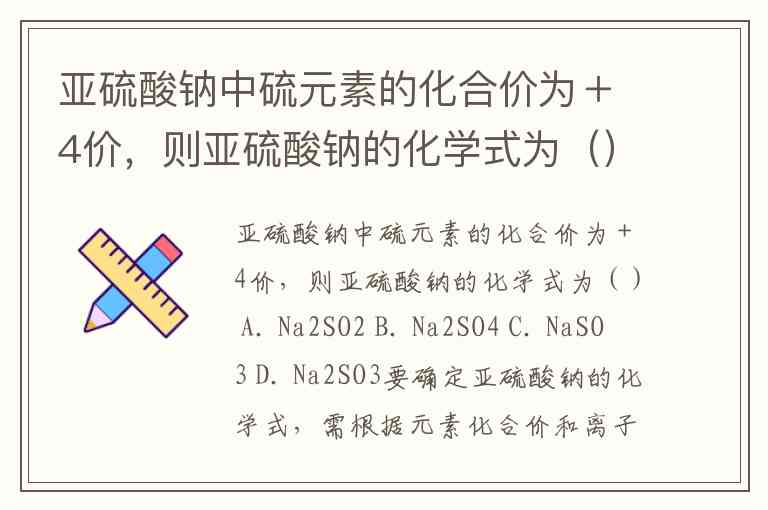 要确定亚硫酸钠的化学式,需根据元素化合价和离子电荷平衡原则推断。钠元素通常显+1价(Na⁺),硫元素化合价为+4价,氧元素通常显-2价。亚硫酸钠由钠离子和亚硫酸根离子构成,需先确定亚硫酸根离子的组成。