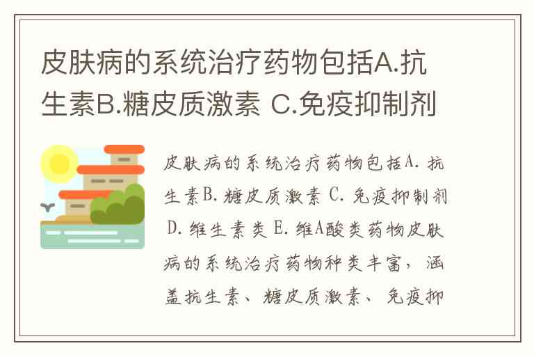 皮肤病的系统治疗药物包括A.抗生素B.糖皮质激素 C.免疫抑制剂 D.维生素类 E.维A酸类药物