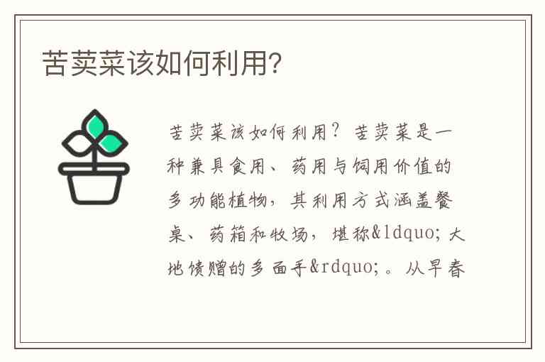 从古代“荼”的救荒记忆到现代多功能作物,苦荬菜的价值被不断重新发现。无论是厨房中的一盘凉拌苦菜,药箱里的一剂良方,还是牧场里的一把青饲料,这种看似平凡的植物,正以多元角色滋养着人与自然的关系。下次在田间遇见那摇曳的黄色小花,不妨思考:它还能在我们的生活中扮演怎样的角色?