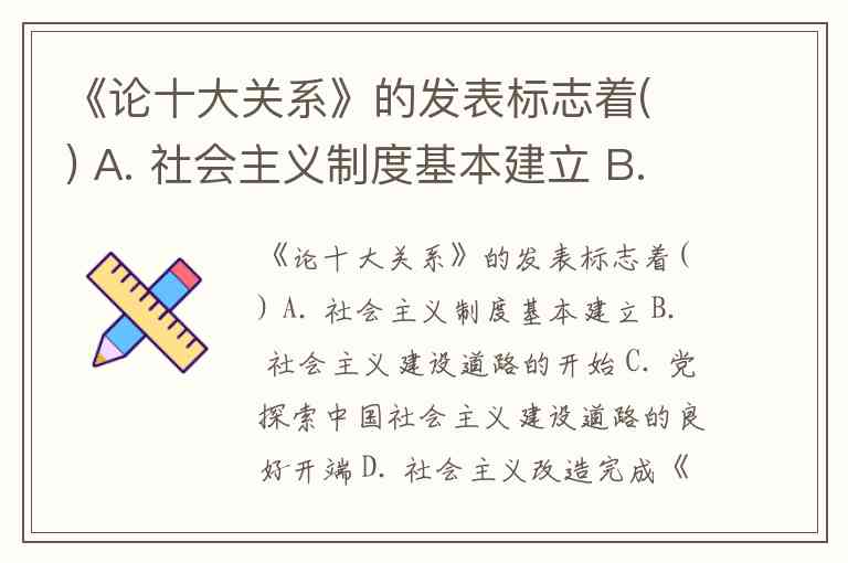 《论十大关系》的发表标志着( ) A. 社会主义制度基本建立 B. 社会主义建设道路的开始 C. 党探索中国社会主义建设道路的良好开端 D. 社会主义改造完成