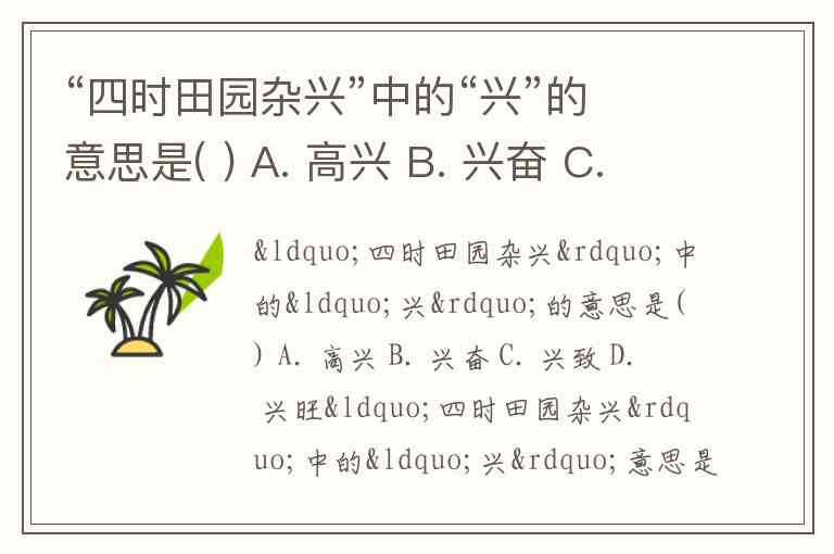 “四时田园杂兴”中的“兴”的意思是( ) A. 高兴 B. 兴奋 C. 兴致 D. 兴旺