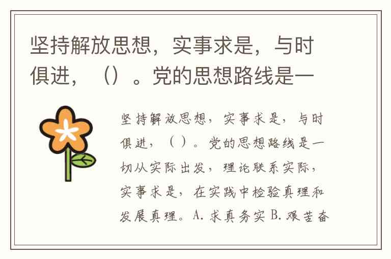 坚持解放思想,实事求是,与时俱进,()。党的思想路线是一切从实际出发,理论联系实际,实事求是,在实践中检验真理和发展真理。A.求真务实 B.艰苦奋斗 C.执政为民