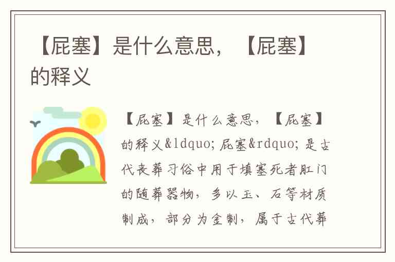 虽然“屁”字常带有口语化色彩,但在此词中仅指人体生理部位,并无秽语含义,体现了古代丧葬文化中“事死如事生”的观念。这种独特的随葬品不仅具有考古研究价值,也为理解古人的生死观提供了实物佐证。