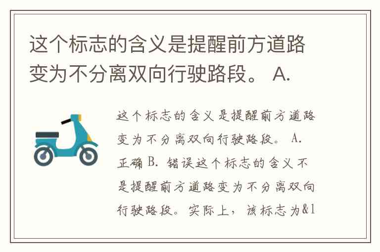 这个标志的含义是提醒前方道路变为不分离双向行驶路段。 A. 正确 B. 错误