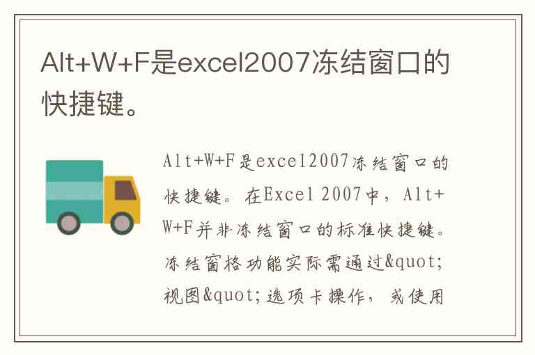 Alt+W+F是excel2007冻结窗口的快捷键。