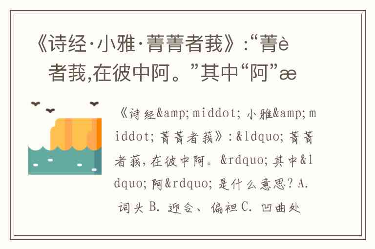 《诗经·小雅·菁菁者莪》:“菁菁者莪,在彼中阿。”其中“阿”是什么意思? A. 词头 B. 迎合、偏袒 C. 凹曲处 D. 大丘陵