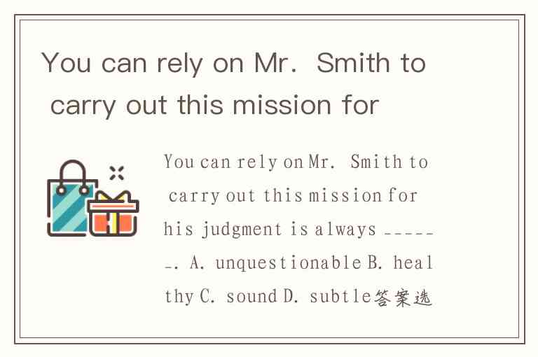 You can rely on Mr.Smith to carry out this mission for his judgment is always ______. A. unquestionable B. healthy C. sound D. subtle