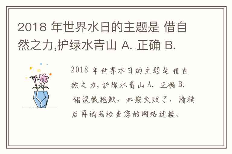 2018 年世界水日的主题是 借自然之力,护绿水青山 A. 正确 B. 错误