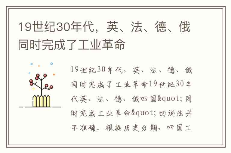19世纪30年代,英、法、德、俄同时完成了工业革命