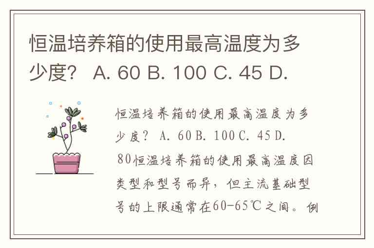 恒温培养箱的使用最高温度为多少度? A. 60 B. 100 C. 45 D. 80