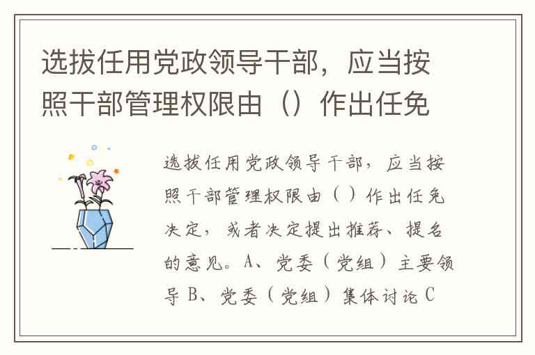 选拔任用党政领导干部,应当按照干部管理权限由()作出任免决定,或者决定提出推荐、提名的意见。A、党委(党组)主要领导 B、党委(党组)集体讨论 C、组织人事部门研究