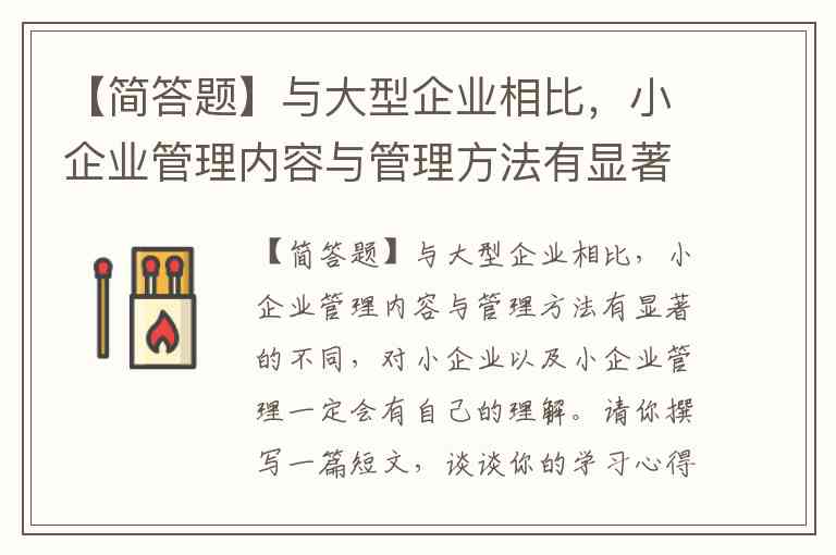 【简答题】与大型企业相比,小企业管理内容与管理方法有显著的不同,对小企业以及小企业管理一定会有自己的理解。请你撰写一篇短文,谈谈你的学习心得。