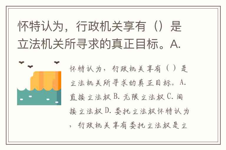 怀特认为,行政机关享有()是立法机关所寻求的真正目标。A.直接立法权 B.无限立法权 C.间接立法权 D.委托立法权