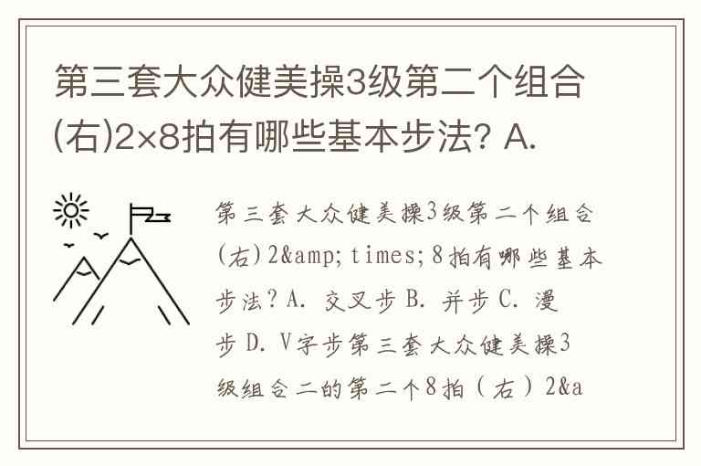 第三套大众健美操3级第二个组合(右)2×8拍有哪些基本步法? A. 交叉步 B. 并步 C. 漫步 D. V字步