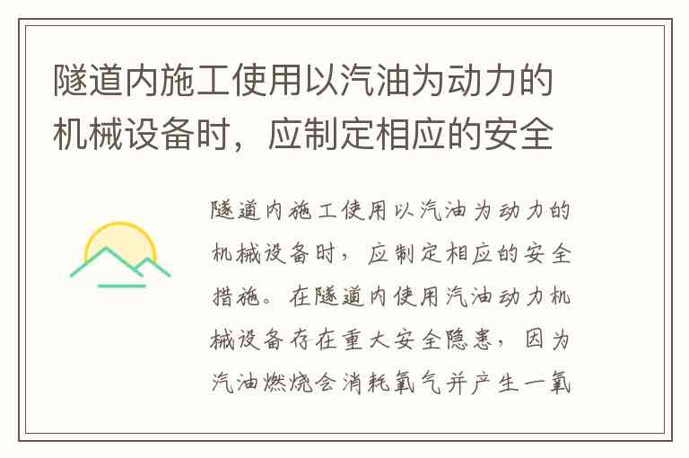 隧道内施工使用以汽油为动力的机械设备时,应制定相应的安全措施。