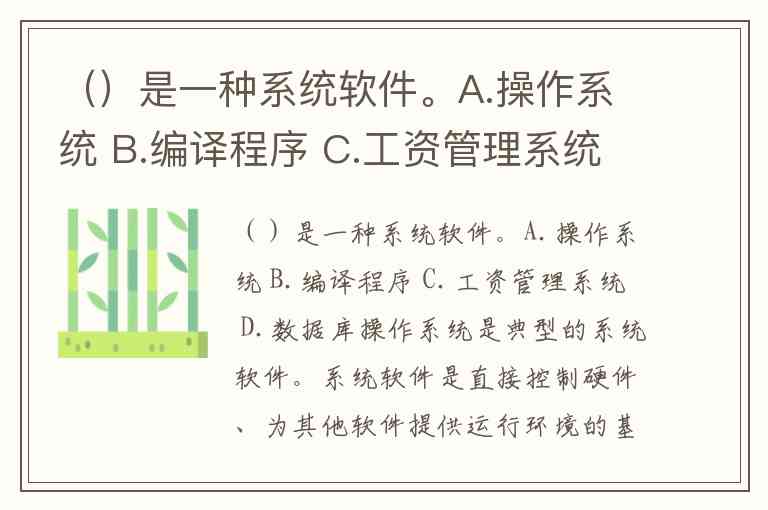 ()是一种系统软件。A.操作系统 B.编译程序 C.工资管理系统 D.数据库