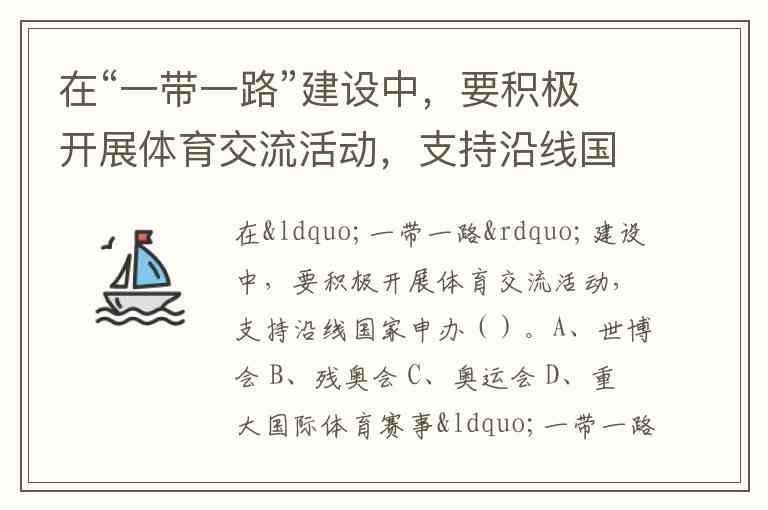 在“一带一路”建设中,要积极开展体育交流活动,支持沿线国家申办()。A、世博会 B、残奥会 C、奥运会 D、重大国际体育赛事
