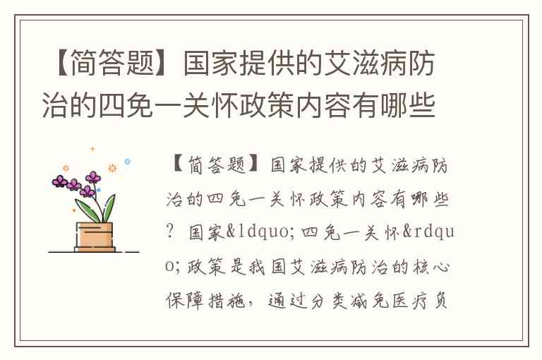 【简答题】国家提供的艾滋病防治的四免一关怀政策内容有哪些?