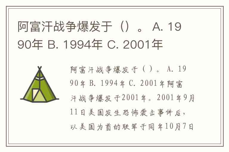 阿富汗战争爆发于()。 A. 1990年 B. 1994年 C. 2001年