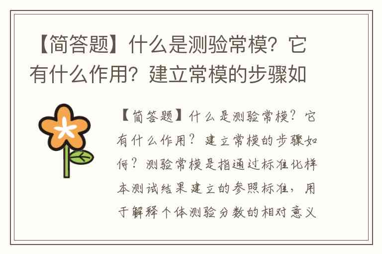 【简答题】什么是测验常模?它有什么作用?建立常模的步骤如何?
