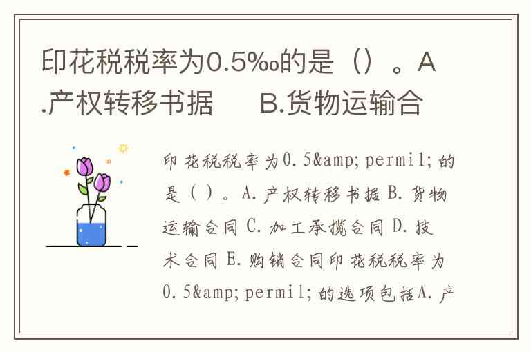 印花税税率为0.5‰的是()。A.产权转移书据 B.货物运输合同 C.加工承揽合同 D.技术合同 E.购销合同