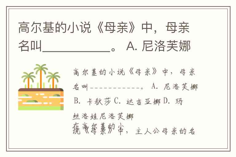 高尔基的小说《母亲》中,母亲名叫___________。 A. 尼洛芙娜 B. 卡秋莎 C. 达吉亚娜 D. 玛丝洛娃