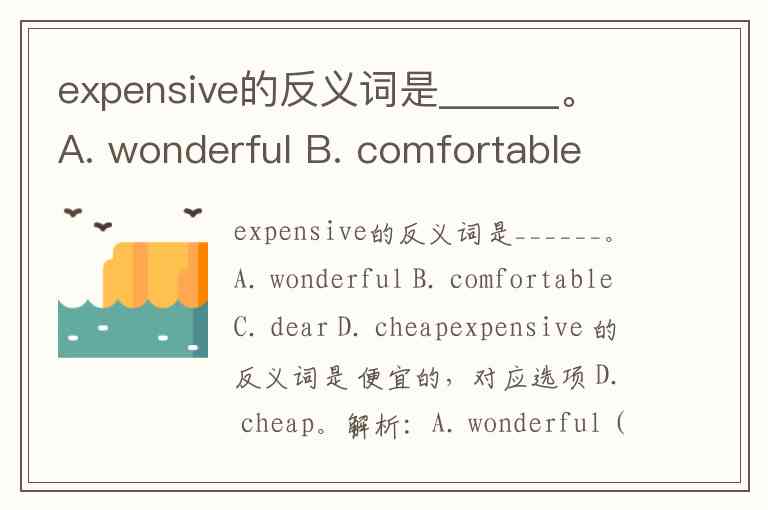 expensive的反义词是______。 A. wonderful B. comfortable C. dear D. cheap