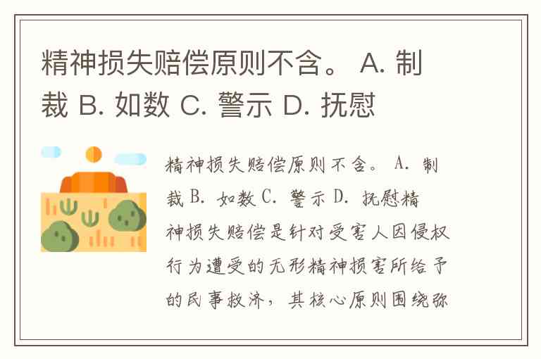 精神损失赔偿原则不含。 A. 制裁 B. 如数 C. 警示 D. 抚慰