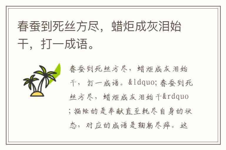 春蚕到死丝方尽,蜡炬成灰泪始干,打一成语。