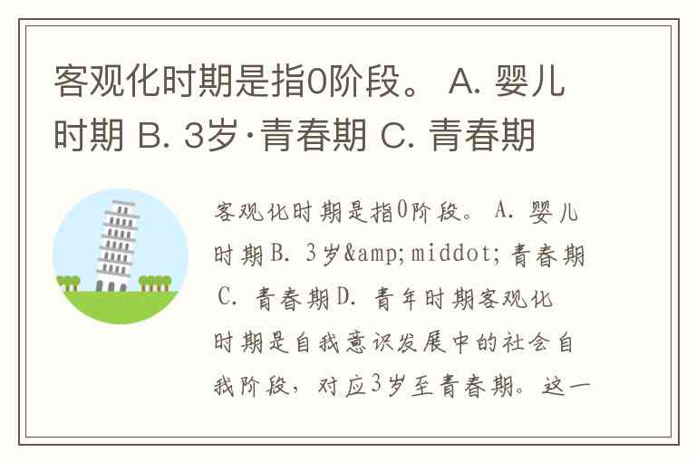 客观化时期是指0阶段。 A. 婴儿时期 B. 3岁·青春期 C. 青春期 D. 青年时期
