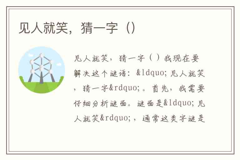我现在要解决这个谜语:“见人就笑,猜一字”。首先,我需要仔细分析谜面。谜面是“见人就笑”,通常这类字谜是通过拆字或者组合来找到答案的。