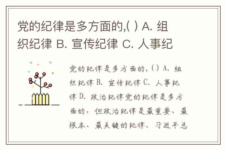 党的纪律是多方面的,( ) A. 组织纪律 B. 宣传纪律 C. 人事纪律 D. 政治纪律