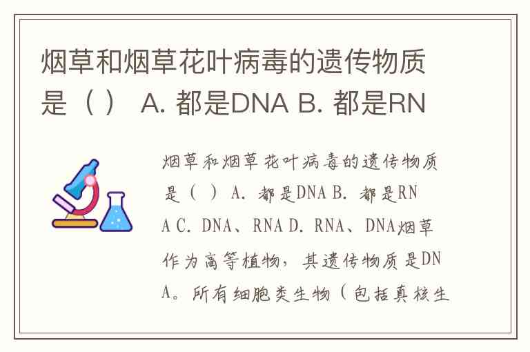 烟草和烟草花叶病毒的遗传物质是( ) A. 都是DNA B. 都是RNA C. DNA、RNA D. RNA、DNA