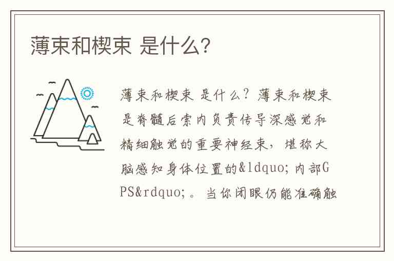 薄束和楔束是脊髓后索内负责传导深感觉和精细触觉的重要神经束,堪称大脑感知身体位置的“内部GPS”。当你闭眼仍能准确触摸鼻尖,或赤脚感知地面纹理时,正是这对神经束在传递关键信号。