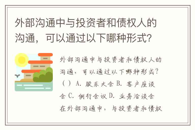 外部沟通中与投资者和债权人的沟通,可以通过以下哪种形式?() A. 股东大会 B. 客户座谈会 C. 例行会议 D. 业务洽谈会