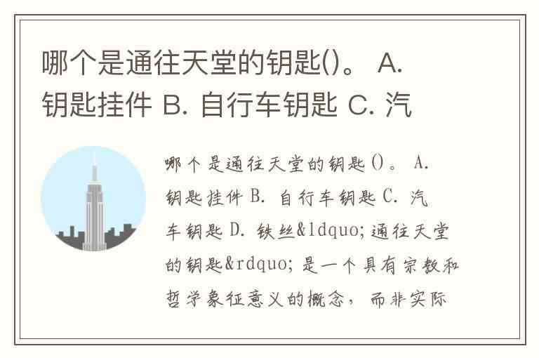哪个是通往天堂的钥匙()。 A. 钥匙挂件 B. 自行车钥匙 C. 汽车钥匙 D. 铁丝