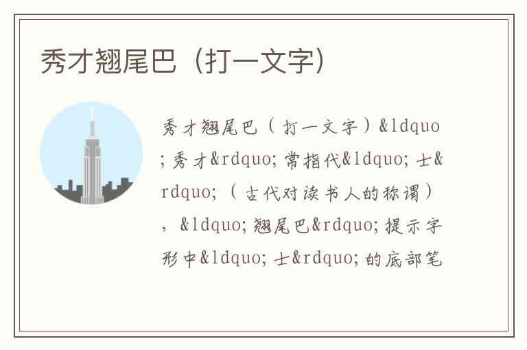 “秀才”常指代“士”(古代对读书人的称谓),“翘尾巴”提示字形中“士”的底部笔画向上扬起。将“士”字下方的横画弯成上翘的钩,便成“壬”字。