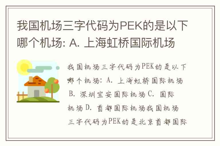 我国机场三字代码为PEK的是以下哪个机场: A. 上海虹桥国际机场 B. 深圳宝安国际机场 C. 国际机场 D. 首都国际机场