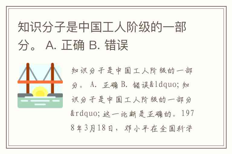 知识分子是中国工人阶级的一部分。 A. 正确 B. 错误