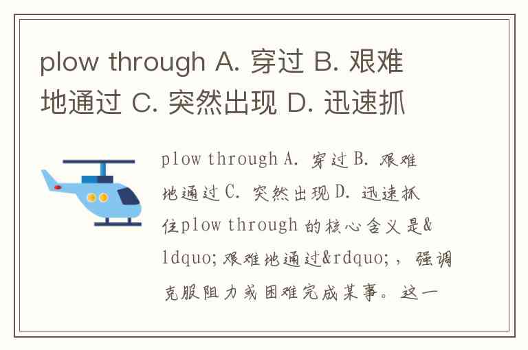 plow through A. 穿过 B. 艰难地通过 C. 突然出现 D. 迅速抓住
