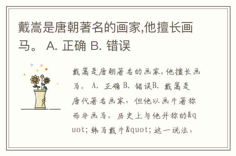 戴嵩是唐朝著名的画家,他擅长画马。 A. 正确 B. 错误