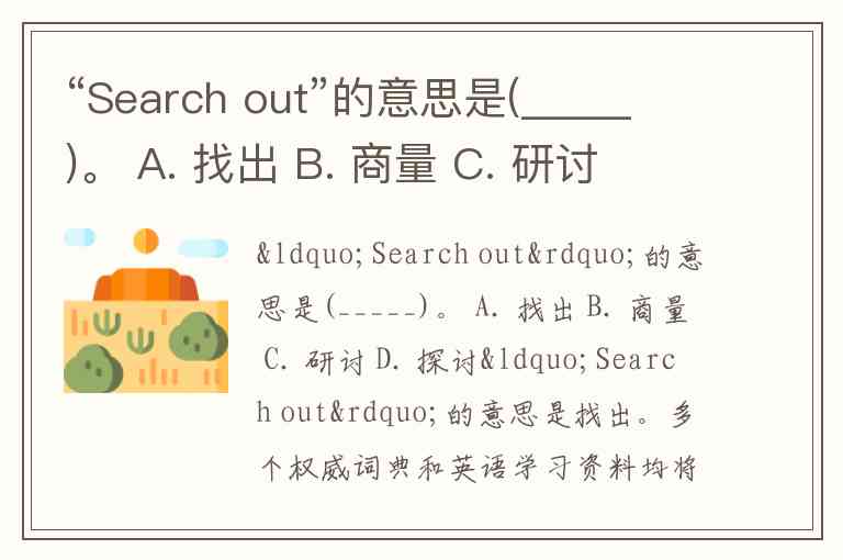 “Search out”的意思是(_____)。 A. 找出 B. 商量 C. 研讨 D. 探讨