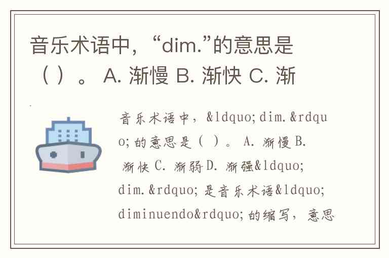 音乐术语中,“dim.”的意思是( )。 A. 渐慢 B. 渐快 C. 渐弱 D. 渐强