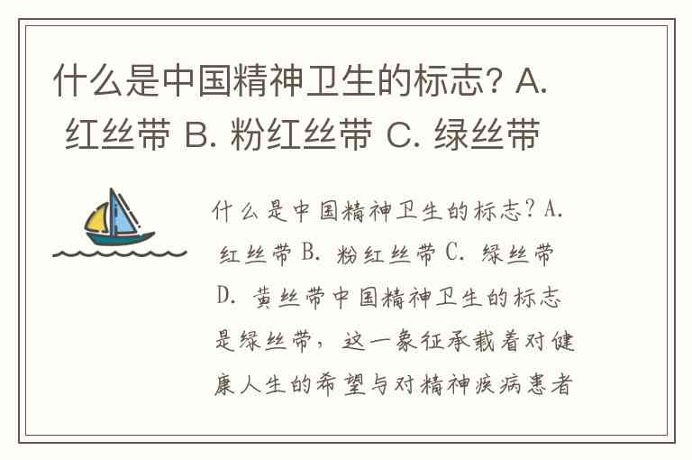 什么是中国精神卫生的标志? A. 红丝带 B. 粉红丝带 C. 绿丝带 D. 黄丝带