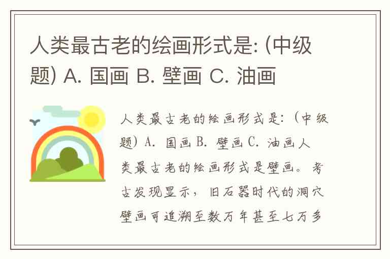 人类最古老的绘画形式是: (中级题) A. 国画 B. 壁画 C. 油画