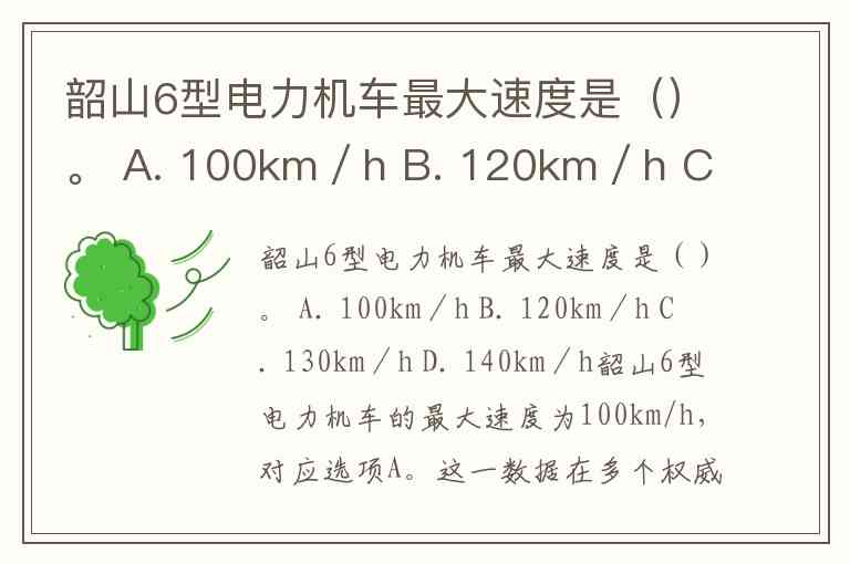 韶山6型电力机车最大速度是()。 A. 100km/h B. 120km/h C. 130km/h D. 140km/h