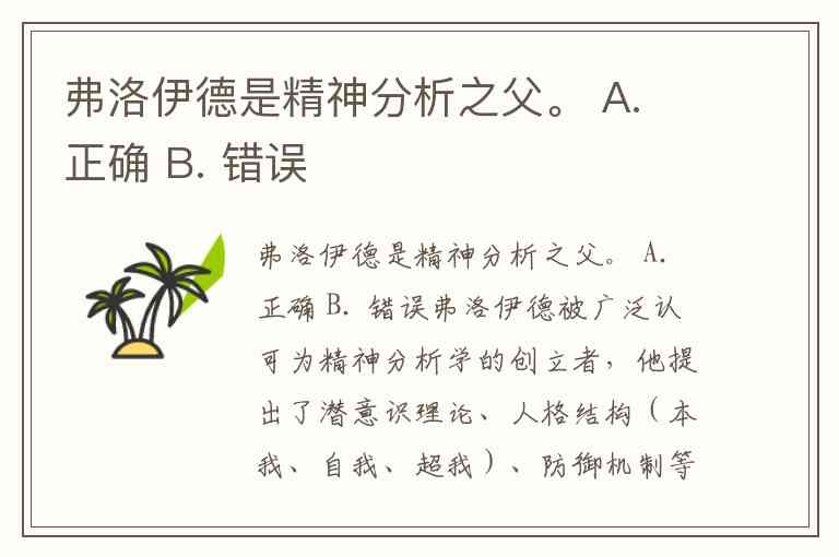弗洛伊德是精神分析之父。 A. 正确 B. 错误