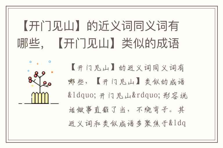 【开门见山】的近义词同义词有哪些,【开门见山】类似的成语