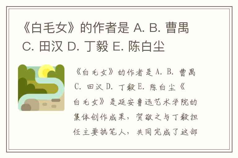 《白毛女》的作者是 A. B. 曹禺 C. 田汉 D. 丁毅 E. 陈白尘