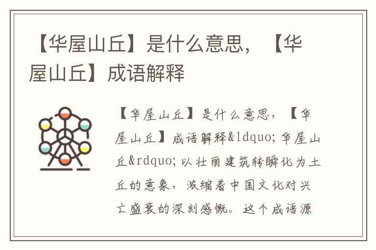 从曹植笔下对生命无常的喟叹,到后世用来形容家族兴衰、朝代更迭,“华屋山丘”始终提醒着人们:再辉煌的成就终会被时间消解。当我们面对世事变迁时,这个成语是否也在启示我们,该如何在短暂的“华屋”时光中寻找永恒的价值?